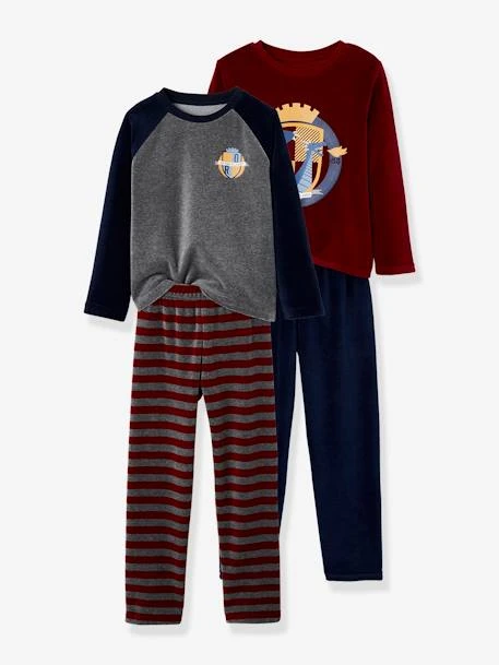 Lot de 2 pyjamas longs garçon en velours 75% coton, 25% polyester.