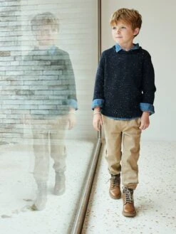 Pull garçon en maille moulinée toute douce 60% coton, 40% acrylique.