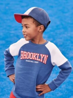 Ce sweat sport sort de la mêlée : une inscription team Brooklyn animé de détails en encre gonflante, un bel effet color block qu’on adore… il a tous les détails qui comptent pour plaire à votre petit champion ! Il est aussi chouette pour le sport que pour un look esprit collège au quotidien. Il fait équipe avec un pantalon de jogging, un short de sport ou avec un jean.